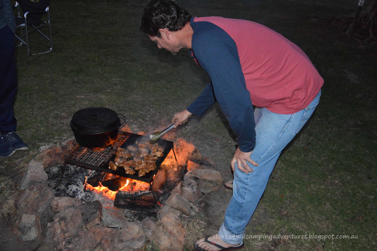 Back at camp around 2pm and its time to start getting organised for the cook off. Craig needs to marinate those chicken wings firstly, then he got the fire going as I needed to brown my chicken drumsticks before simmering my dish for a couple of hours (I'm cooking my preserved lemon, olive & chicken tagine with cous cous)