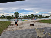 We rolled into Cobbold Gorge around 12.40pm and it was a sight for sore eyes. Good first impressions upon driving in the nice entrance, down past the lake, grassy area and infinity pool looking out over the lake area with it's own swim up pool bar and lets not forget the Bistro with lovely deck next to the pool area, so much too take in. Pulled up at reception and while Doreen and I booked in the boys parked out of the way of the road and got Barney out.
